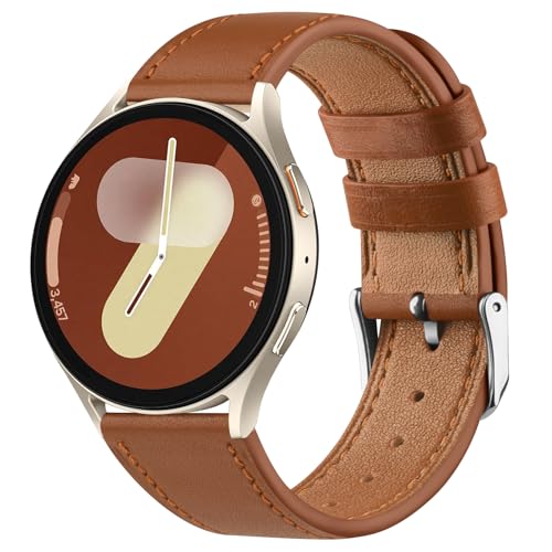 Mugust armband för Samsung Galaxy Watch 7/6/5/4 40 mm 44 mm/Watch 5 Pro/Watch 4 Classic/6 Classic/Watch FE 40 mm/Watch 3 41 mm/Active 2 läderarmband (brun)