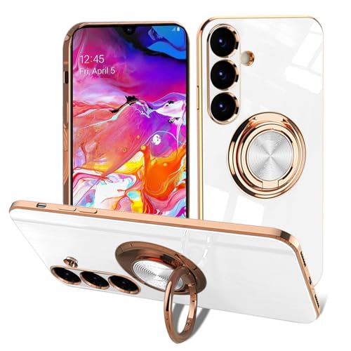 EYZUTAK elektropläterad magnetisk ringhållare fodral för Samsung Galaxy A54 5G, 360 graders rotation metall anti-fall fingerring hållare magnet bilhållare mjuk smal silikon stöttåligt fodral – vit