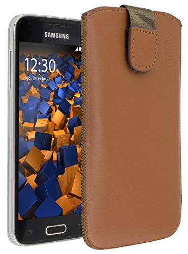mumbi äkta läderfodral kompatibel med Samsung Galaxy S5 mini fodral läder väska Case Wallet, Cognac