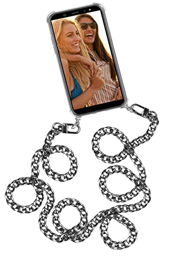 ONEFLOW Mobiltelefon kedja avtagbar kompatibel med Samsung Galaxy M21 – fodral med band, mobiltelefonfodral med kedja av metall att hänga upp, fint silver