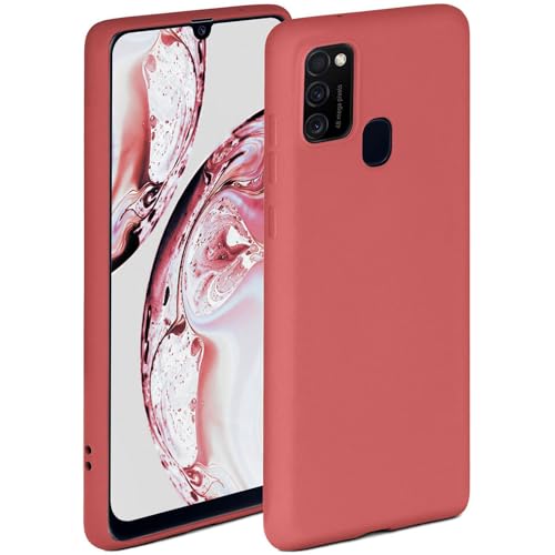 ONEFLOW Mjukt fodral kompatibelt med Samsung Galaxy M21 silikonskal, upphöjda kanter för skärmskydd, två lager, mjukt mobiltelefonfodral – matt röd