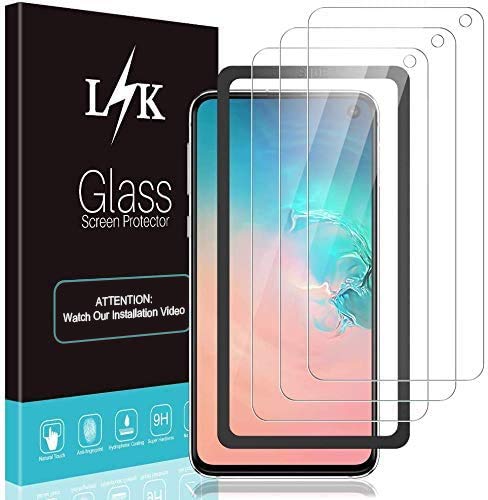 LK 3-pack skärmskydd för Samsung Galaxy S10e – härdat glas HD klar 9H hårdhet bubbelfritt fodral vänlig inriktningsram enkel installation skärm skyddsfilm