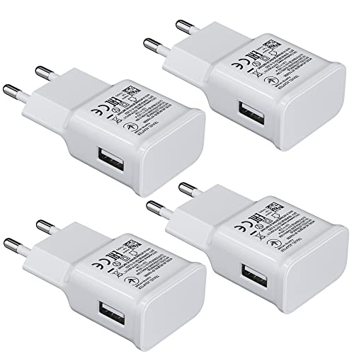 4-Pack USB Ladegerät 15W Ladestecker Kompatibel mit Samsung S21 S20 S10 S6 S7 S8 S9 / Edge/Plus/Active, A20e, Z Flip3, Z Fold2 5G, Note 5 8, Note 9 10 Schnellladung, Ersatz-Original Schnellladegerät