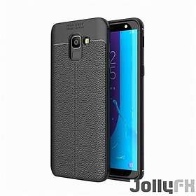 JollyFX Litchi Mönster Flexibel Skydd TPU Läderfodral till Samsung Galaxy J6 J600 2018 Svart
