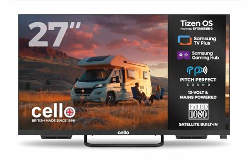 Cello CTRAV-27TZ Smart Traveller-TV 12V 27" med Tizen OS från Samsung, satellitmottagning, Gaming Hub, Pitch Perfect-högtalare, Bluetooth, idealisk för husbilar och båtar, trippel tuner