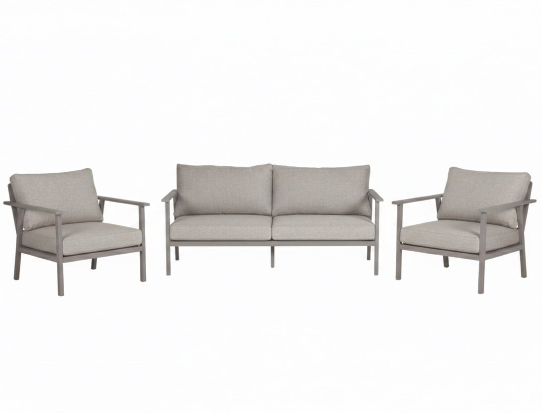 Brafab Samvaro soffgrupp Khaki med sand dyna 3-sitssoffa, 2 fåtöljer & bord 140x90 cm