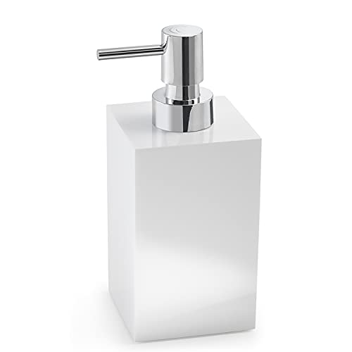 Gedy G-Bangkok Vit tvål, Mått och Vikt: 17,3X7,3X8,4 CM & 0,365 kg, kapacitet 250 ml, Resin och sand Badrum Tvåldispenser, FoU-design, 2 års garanti, unik