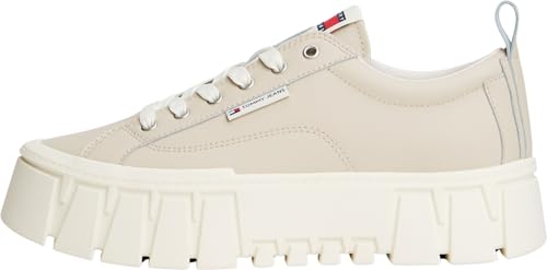 Tommy Jeans dam TJW Vulc Flatform läder EN0EN03008 låg topp, beige (Gulf Sand), 4 UK, Beige Gulf Sand, 37 EU