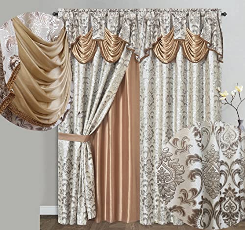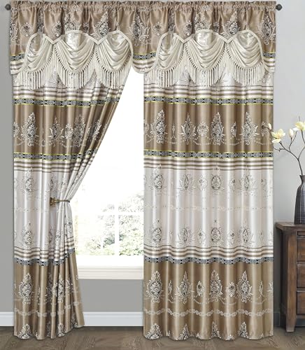 GOHD Samba Star Jacquard fönstergardin panel drapering med bifogad tjusig kappa och taftbaksida. 2 st set Varje st 137 cm bred x 228 cm faller med 45 cm kappa. (SAND)