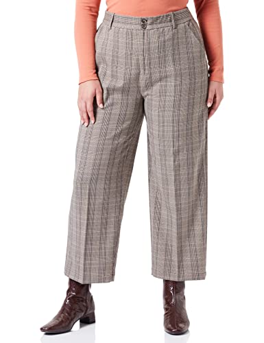 KAFFE dam kostym byxor beskurna byxor hög midja bred, Sand/svart träkontroll, 40