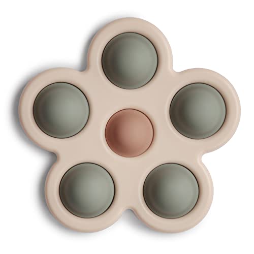 Mushie Tryckleksak För Barn och Spädbarn, Sensorisk Leksak, Stärker Koncentration och Uppmärksamhet, Säker och Högkvalitet, Ålder: 10+ Månader, Blommig Design (Dried Thyme/Natural/Shifting Sand)