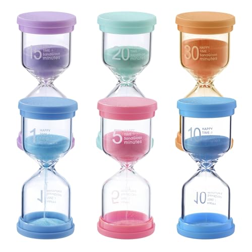 Gvolatee timglas timer, timglassset, färgglad sand, kökstimerklocka, tidshantering, för 30, 1 min, 2 min, 3 min, 5 min, 10 min set (6 stycken)