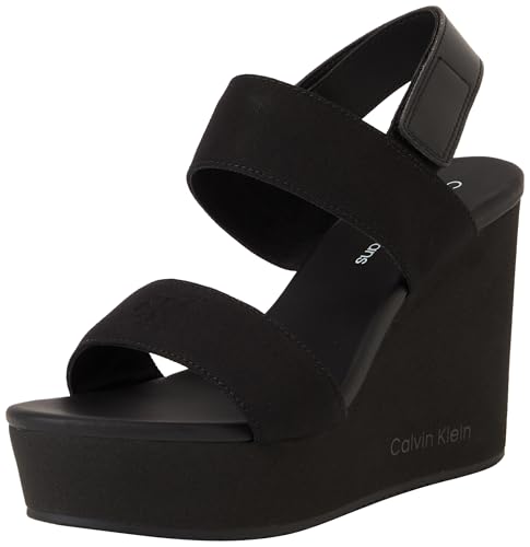 Calvin Klein dam Wedge Webbing in Yw0yw01790 sandaler med kilklack, Svart trippel svart, 37 EU
