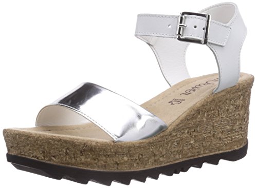 s.Oliver 28341 dam ankelrem sandaler med kilklack, Vitt vitt silver 191-40 EU