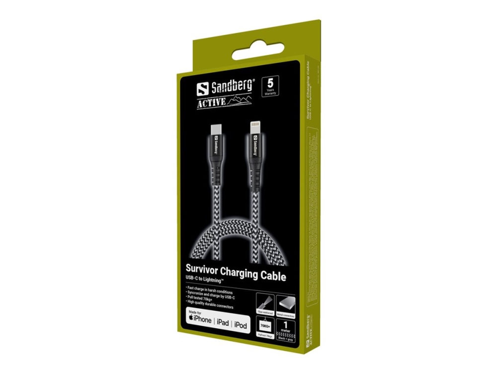 Sandberg Survivor Usb-C Pd>Lightning 1M, 1 M, Lightning, Usb C, Hankoppling, Hankoppling, Svart, Vit