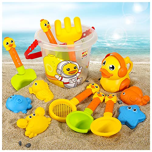 Strandleksak för barn, 14 stycken strandleksak med nätpåse, sandformar, hink, spadar, vattenkanna sandleksaker för barn