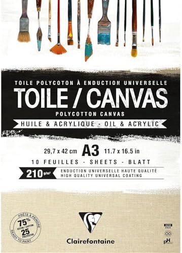 Clairefontaine 975211C - ett limmat block med 10 färdiga dukar 29,7 x 42 cm 200 g, sandkorn