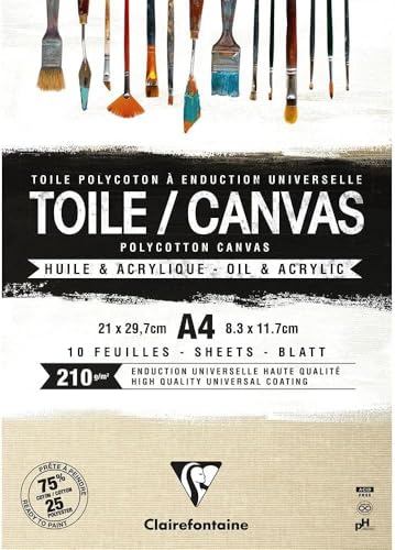 Clairefontaine 975210C - ett limmat block med 10 färdiga dukar 21 x 29,7 cm 200 g, sandkorn