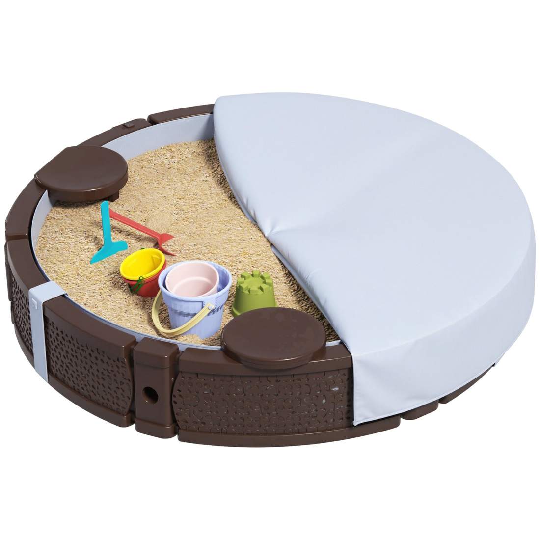 Sandlåda, sandlåda sandlåda med 3 sittplatser, vattentät bas, väderbeständig skyddspresenning, för 1,5-5 år barn mörkbrun Aosom
