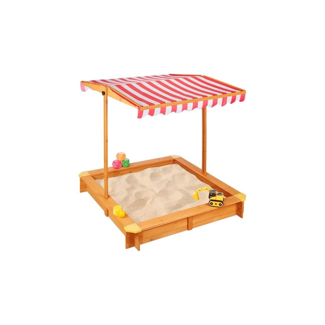 Relaxdays Sandlåda med justerbart tak, H x B x D: 117 x 117 x 117 cm, sandlåda med golvfleece, gran, natur, ljusbrun, röd, vit