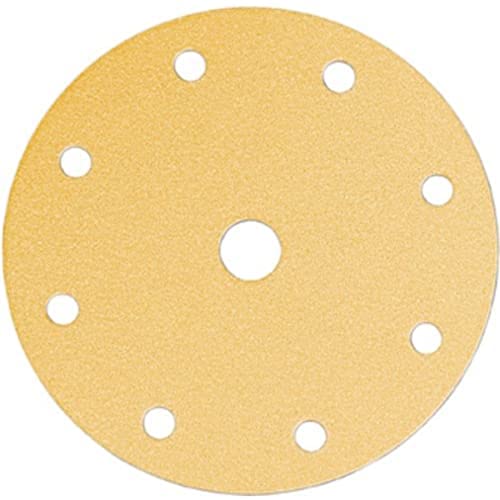 Mirka Gold universellt sandpapper sliprondeller Ø 150mm / Kardborreband / 9-hål / P320 / 100 st/För slipning av gips, spackel, spånskivor, trä, lack
