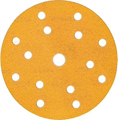 Mirka Gold universellt sandpapper Ø 150mm / kardborreband / 17-hål/korn P100 / 100 st/För slipning av gips, spackel, spånskivor, trä, lack