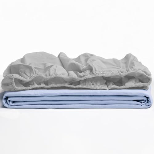 TRAMAS+ Justerbara underlakan, 160 x 190 cm 100% bomull, extra mjukt – säng 150, grå