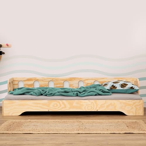 smartwood TILA 3 barnsäng 80x160 med fallskydd - barnsäng i trä för killar och tjejer - mångsidig Montessori-säng med fallskydd och lamellram 160x80 cm - naturligt trä