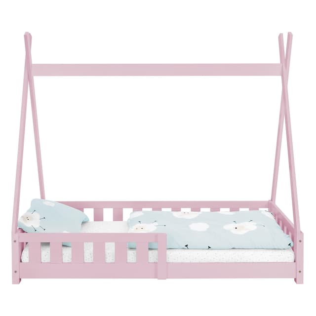 ML-Design Barnsäng Tipi 80x160 cm naturlig med fallskydd och lamellstomme, tillverkad av furu, indisk säng av massivt trä för flickor och pojkar, hus säng med staket barnhus ungdomssäng leksäng tält