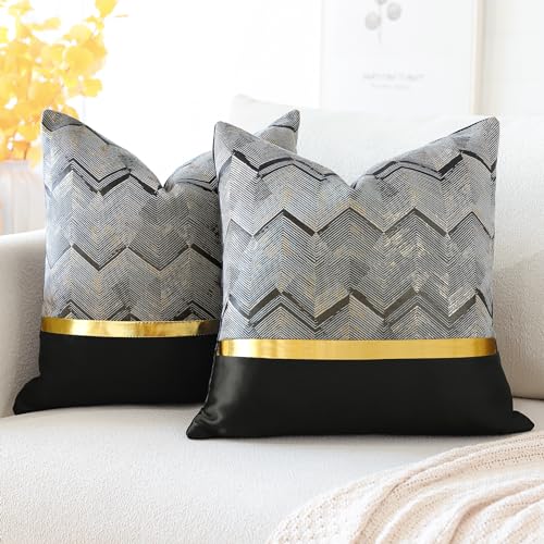 Artscope Uppsättning av 2 kuddöverdrag för säng soffa bil dekor lyx modern minimalistisk guld läder sömnad vågiga ränder fyrkantigt örngott prydnadskudde överdrag 60 x 60 cm (svart)