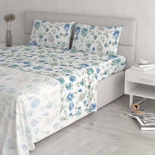 Caleffi 79367 Bomull Flanell Enfärgad Komplett sängkläder för torg och halv säng, Ljusblå