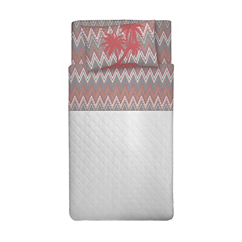 PENSIERI DELICATI 1 fyrkantig och halv säng 100% bomull, komplett lakan 1 kvadrat halv 120 x 200 Inklusive lakan under, över och 1 örngott, tillverkad i Italien, palmer korall