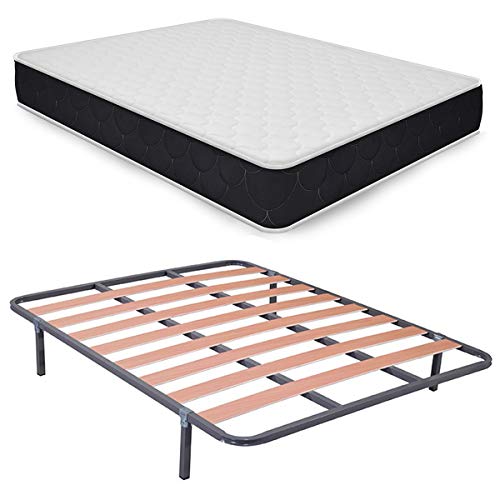 Duérmete Online - spara Pack komplett säng med minnesskum madrass ficka Visco Vändbar +Basic Bed Base +6 ben, 135x190