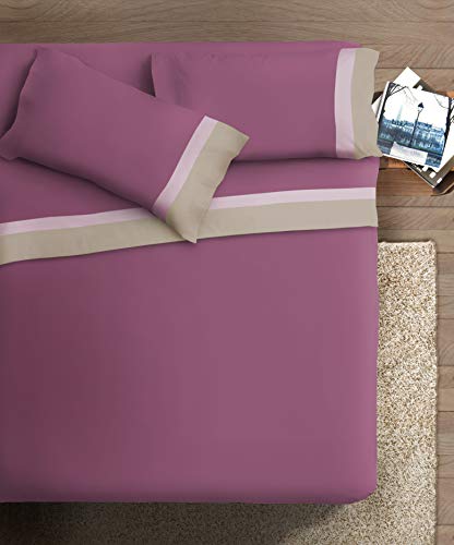 GEMITEX Komplett säng tillverkad i Italien FLANELLA i 100% Bomull, Dubbelrum, linje glädje, design G17 variant 03 ROSA, med Vinter ANTIPILLING BEHANDLING, VARM OCH SPARA PÅ VÄRM!