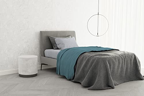 Fashion-sängset, tillverkade i Italien- komplett säng i mjuk mikrofiber, underlakan med hörn, överlakan 150 x 270 och örngott med inre flik, enkel, urban blå