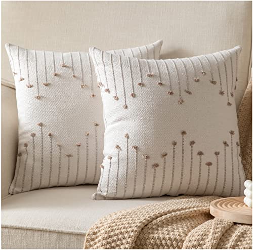 Boho Prydnadskuddöverdrag 20 x 20 set med 2 dekorativa kuddar för säng, neutrala kuddöverdrag beige med solbränd linje prydnadskuddar för modern bondgård soffa vardagsrum utomhus
