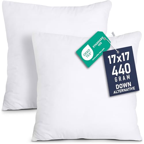 Coop Home Goods prydnadskuddar (paket med 2 vita), 18 x 18 kuddinsatser, inomhus- och utomhuskuddar, justerbara soffkuddar och dekorativa kuddar för säng, justerbar kuddinsats med minnesskum fyllning