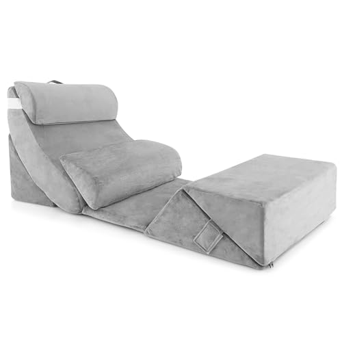LIFEZEAL Set med 7 ortopediska kuddar för säng eller soffa, läskudde, avtagbart och tvättbart överdrag, sömnkudde med stöd för huvud, nacke, rygg och ben, grå (119 x 59 x 55 cm)