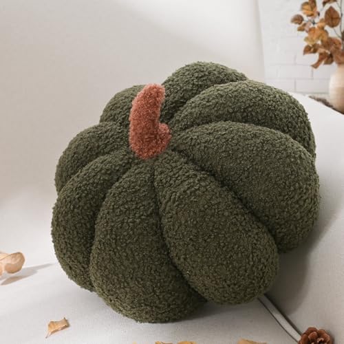 Yhoelata Pumpakudde, stor kudde i pumpaform, grön dekorativ kudde, estetisk soffkudde, sherpakudde för säng, runda dekorativa kuddar för barn sovrum, gåva, 20 cm