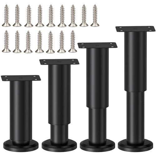 LCOUACEO 4 stycken möbelfött justerbar, justerbara stödfötter för soffa, skåp, säng i metall, svart, 12–18,5 cm höjd