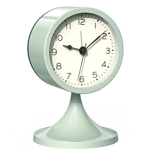 AYRELY® 7,6 cm söt analog väckarklocka, liten retro bordsklocka batteridriven, slient metall skrivbordsklocka med ljus för vardagsrumsdekor, sovrum, säng, hylla (grön)