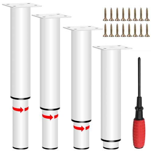 Vinsamhet 4 stycken möbelfötter av metall, 25–43 cm justerbara möbelfötter med skruvar och skruvmejslar, höjdjusterbara 0–40 mm, kan belastas upp till 800 kg, möbelben för soffa, säng och skåp, vit