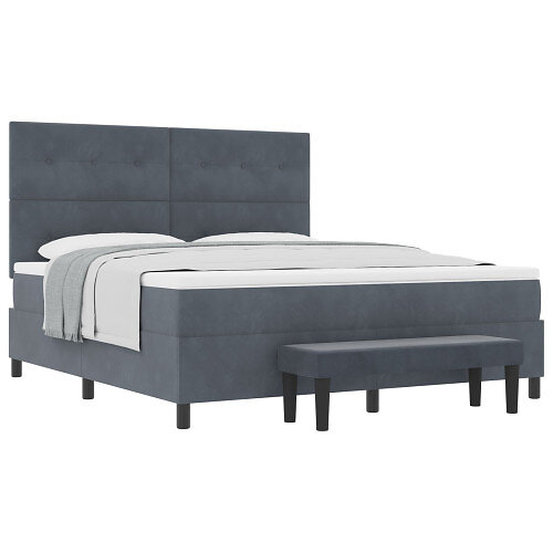 vidaXL Sängbotten med madrass och bänk Mörkgrå 180x200 cm Sammet