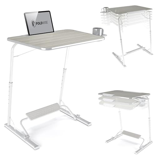 FurnitureR Små fällbara sidobord, laptopbord, höjd, justerbar, bärbar, multifunktionell bordsskiva, MDF bänkskiva sängbord för att äta, arbete, läsning, skrivning, laptopstativ