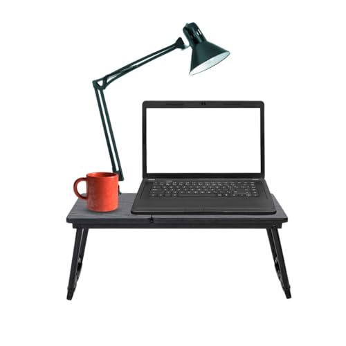 Fällbart laptopbord för soffa – bärbart datorskrivbord i trä och litet bord för sängbord, justerbar höjd, lutningsvinkel, fotstöd, mugghållare, surfplattehållare (Black - Dark Wood)