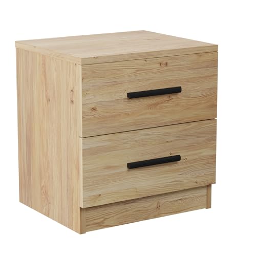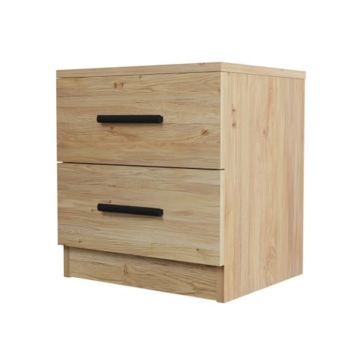 Homey - Sängbord i nordisk stil Alais modell med 2 lådor, praktisk och elegant design, honung ek, mått: 40 cm bredd x 46,5 cm höjd x 35 cm djup