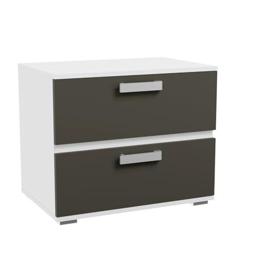 amuéblate Online - Sängbord i nordisk stil modell Malena med 2 lådor, praktisk och elegant design, vit grafit, mått: 60 cm bredd x 50 cm höjd x 39,6 cm djup