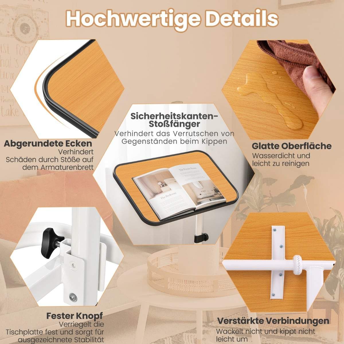 Fetcoi Sidobord, säng, laptopbord, datorbord, justerbar höjd med hjul, inlärning, skrivbord, sängbord, frukostbord, nattduksbord, mobil soffbord (vit)