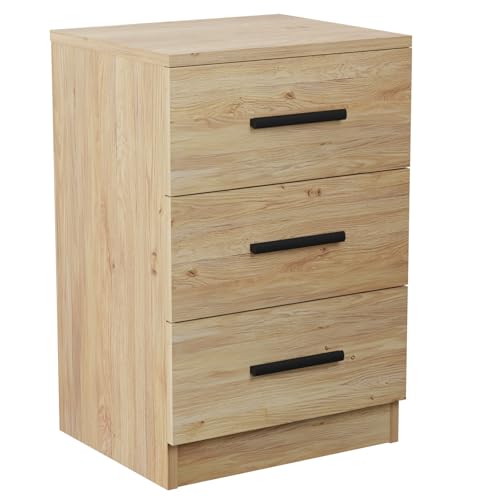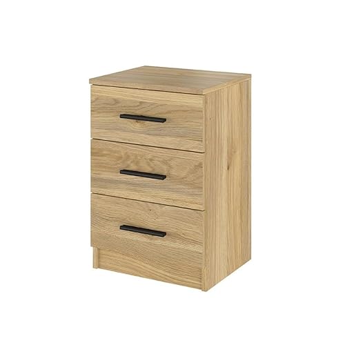 mattfy - Sängbord i nordisk stil Dagna-modell med 3 lådor, praktisk och elegant design, honung ekfärg, mått: 40 cm bredd x 59,5 cm höjd x 35 cm djup