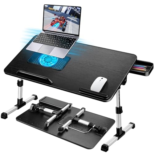 AirOpen laptopbord för sängen, justerbar höjd, vinkel, sängbord fällbart med kylare för bärbar dator, låda, laptopbord för säng, soffa, soffa, golv (60 x 34 cm, svart)